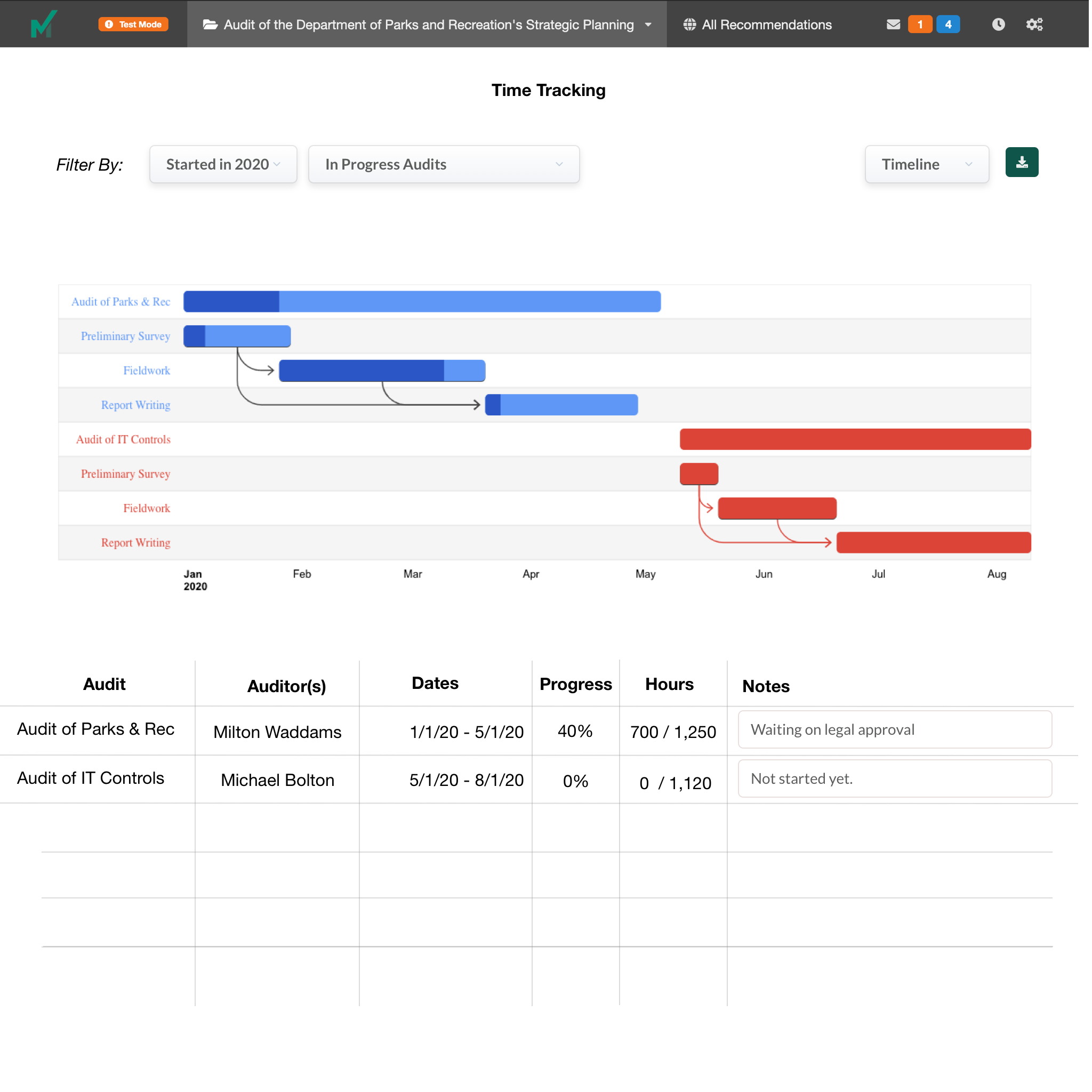 Seamlessly track time spent across audit projects and gain real-time insight into audit progress and resource allocation.